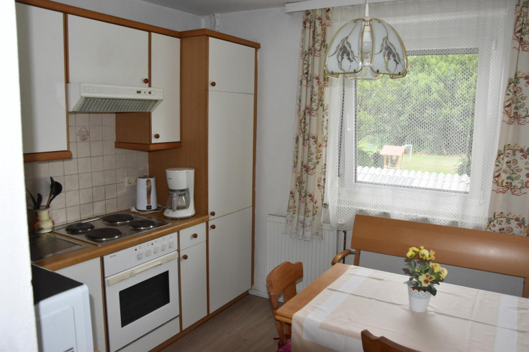 Zusätzlich gibt es Im Erdgeschoss auch noch ein Gäste-WC sowie einige Wirtschaftsräume und eine große moderne Küche (ca. 8 Jahre alt) mit Holz-Zusatzofen, Speisekammer und Arbeitsraum.