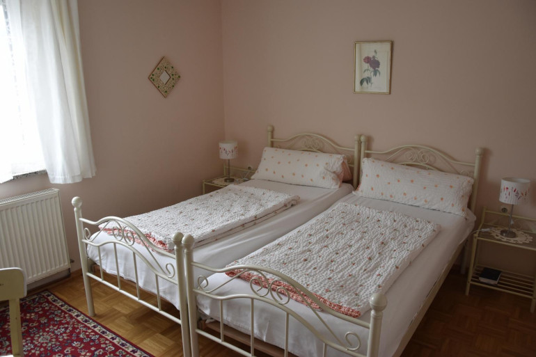 Im Erdgeschoss befinden sich 2 Gästezimmer mit DU und WC, ein liebevoll eingerichteter Frühstücksraum mit Ausgang zur Südterrasse und großem, gepflegten Garten.