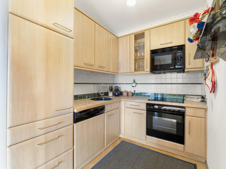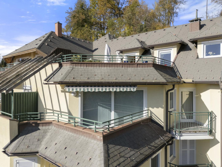 Die 13 m² große Terrasse lädt ein, diese einzigartige Lage zu genießen. Auch vom geräumigen Wohnzimmer aus ist die Perspektive einfach himmlisch. Das Schlafzimmer verfügt zusätzlich über einen eigenen Balkon.