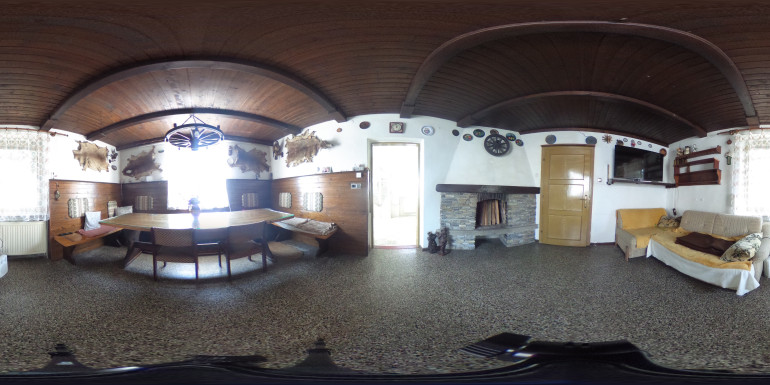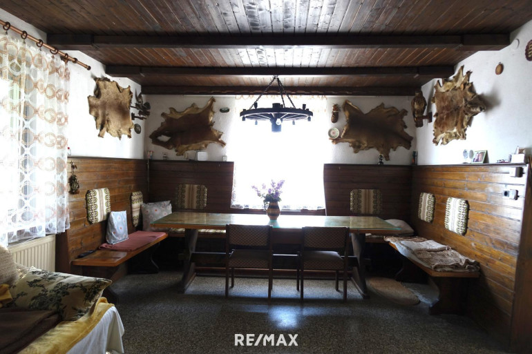 Erdgeschoss: Flur, großzügiges Wohnzimmer, gemütliches Stüberl mit offenem Kamin, Badezimmer, WC, Küche und Speis