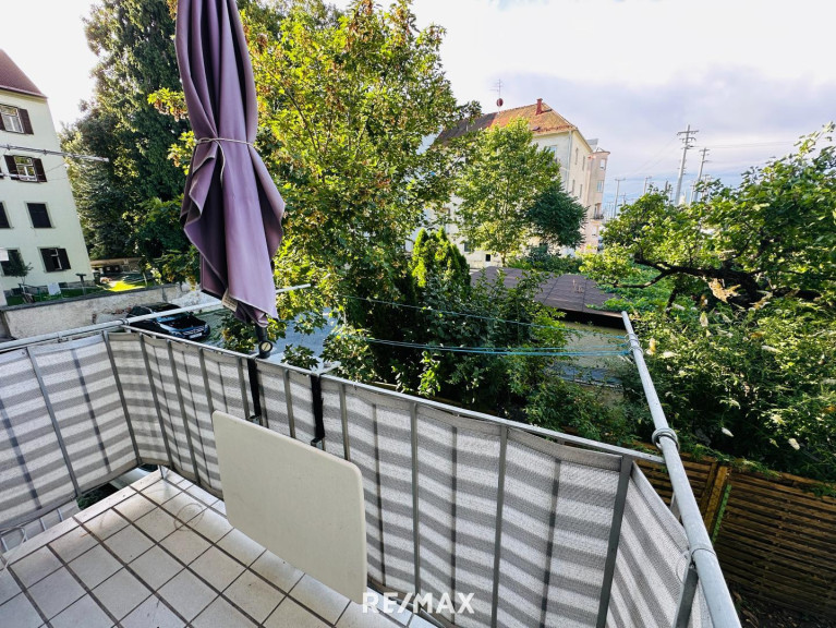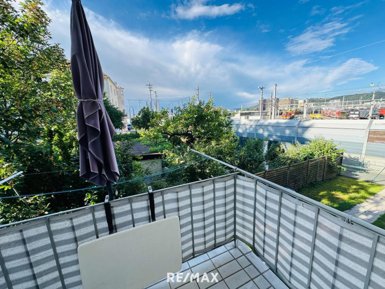 Ein sonniger nach Süden ausgerichteter Balkon mit Blick ins Grüne ist vorhanden.