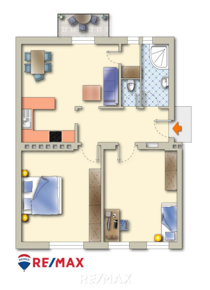 In einer ca. 1960 erbauten Wohnanlage im 1. Obergeschoß situiert, verfügt diese ca. 73 m² Wohnfläche umfassende Eigentumswohnung über einen zentralen Vorraum, eine offene Küche, zwei getrennte (Schlaf-)Zimmer, ein großes Wohn-/Esszimmer, ein Bad mit Dusche, ein separates WC sowie einen Abstellraum.