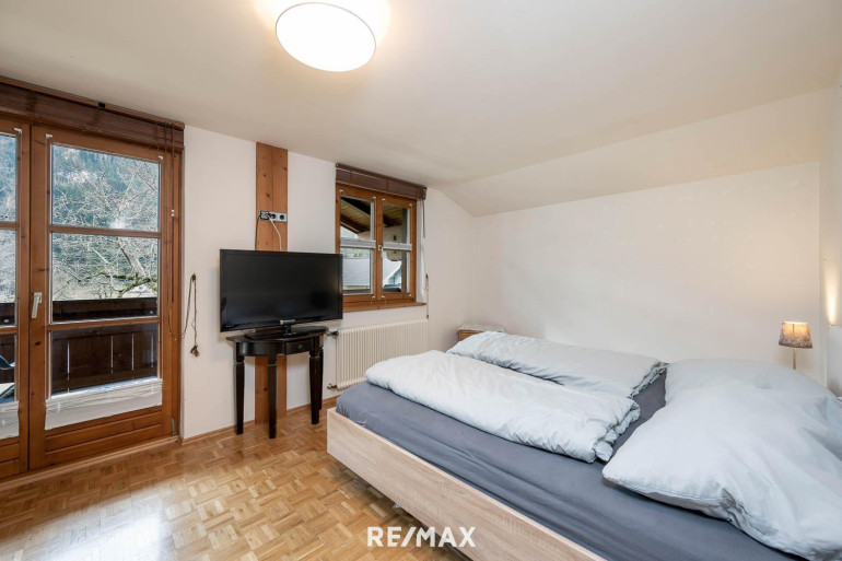 Ein besonderes Plus stellt der 1997 errichtete Zubau dar. Dieser umfasst im Erdgeschoss zwei Arbeitsräume sowie eine Garage. Im Obergeschoss erwarten Sie zwei weitere Schlafzimmer, ein Badezimmer, ein Vorraum, eine weitläufige Diele und ein Balkon mit herrlichem Blick auf die umliegende Bergwelt.
