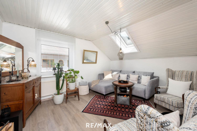 Im Obergeschoss befindet sich eine Wohnung mit ca. 80 m² Wohnfläche, ergänzt durch eine zweite Wohneinheit im Dachgeschoss mit ca. 64 m² Wohnfläche.