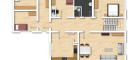 Eigenständiger Außenaufgang, eigener Strom- und Wasserzähler, Wohnzimmer, Küche, drei Schlafzimmer, Abstellraum (optional als weiteres Schlafzimmer nutzbar), Badezimmer, WC sowie Vorraum.