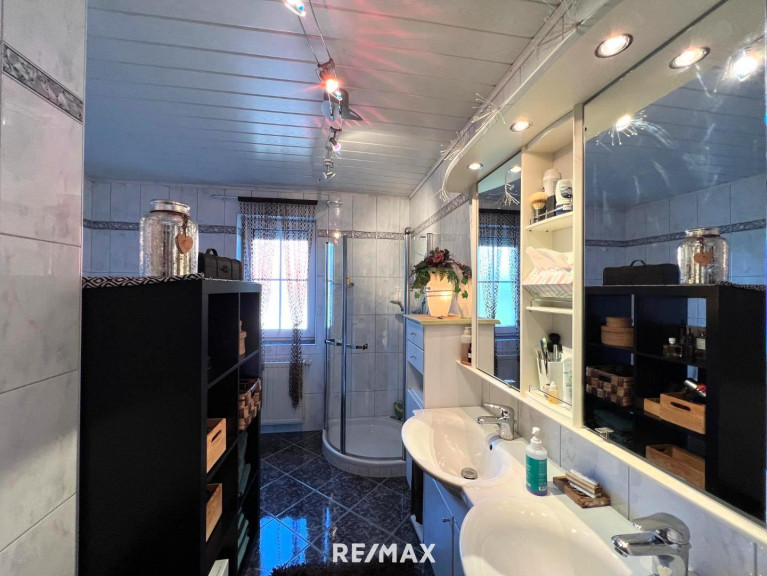 Mit einer Wohnfläche von rund 250 m² überzeugt die Liegenschaft durch ihre klare Struktur und die Aufteilung in zwei eigenständige Wohneinheiten und Eingangsbereiche.