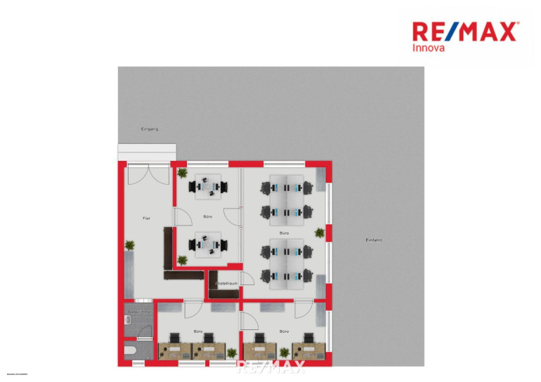 Die Räumlichkeiten sind flexibel nutzbar – eine Teilung der Bürofläche ist auf Wunsch möglich. Dank der vollständigen Möblierung können Sie sofort einziehen und ohne zusätzlichen Einrichtungsaufwand starten.