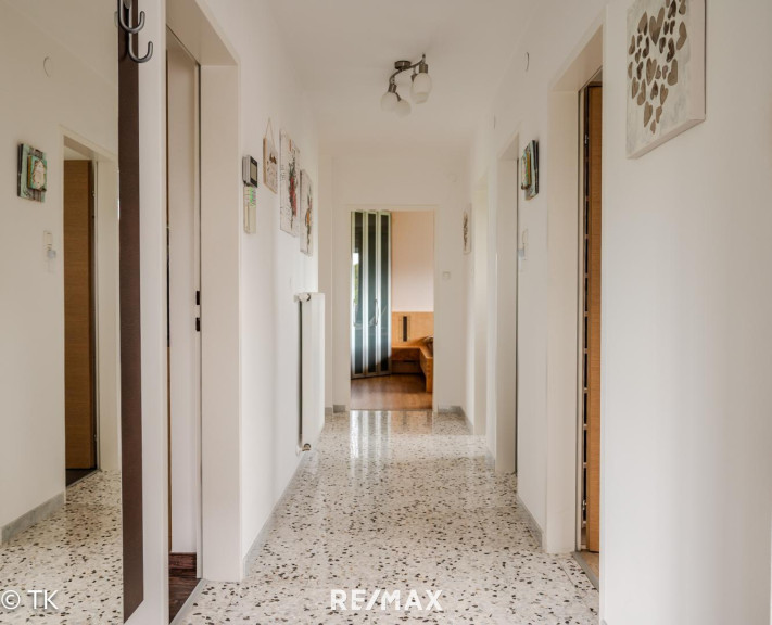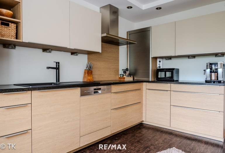 Das Wohn- und Raumkonzept ist gut durchdacht, sodass sich die Liegenschaft für eine oder zwei Familien eignet. Die Wohnfläche verteilt sich auf Erd- und Obergeschoss. Im EG befinden sich eine großzügige Küche mit Essbereich, ein Wohnzimmer mit einem eigenen Ofen für eine behagliche Wohlfühlatmosphäre, ein Schlafzimmer, ein Badezimmer mit Dusche, ein separates WC und ein Ankleidezimmer. Im OG befinden sich zwei weitere Zimmer, ein Badezimmer mit Badewanne, ein WC, ein Ankleidezimmer und ein großes Büro mit Zugang zur Loggia und zur Terrasse. Damit eignet sich das Haus auch sehr gut für Home-Office-Aktivitäten oder zum Führen eines Dienstleistungsunternehmens von zu Hause aus.