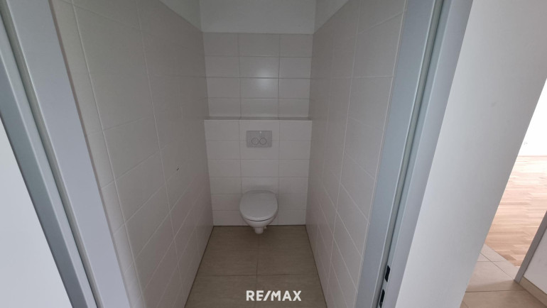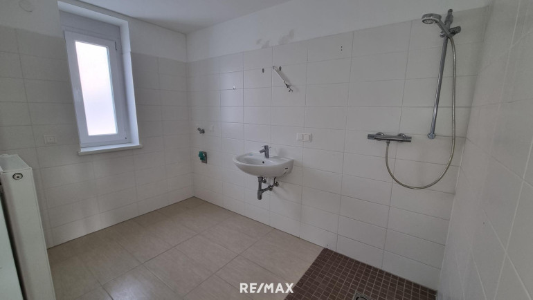 Das modern verflieste Badezimmer ist mit einer bodenebenen Dusche, einem Handwaschbecken und einem Waschmaschinenanschluss ausgestattet. Des Weiteren befindet sich ein Fenster im Badezimmer, dieses verwöhnt sie täglich mit Tageslicht. Das WC ist separat angelegt.