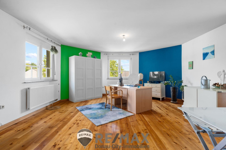 Im Erdgeschoss erwarten Sie ein einladender Vorraum, ein großzügiges Wohnzimmer mit integriertem Essbereich, eine Küche mit Speis, ein Schlafzimmer, ein Schrankraum sowie Bad und separates WC. Im Obergeschoss befindet sich ein großes Zimmer sowie ein offener Luftraum, der noch individuell ausgebaut werden kann, sowie ein lichtdurchfluteter Arbeitsraum.
