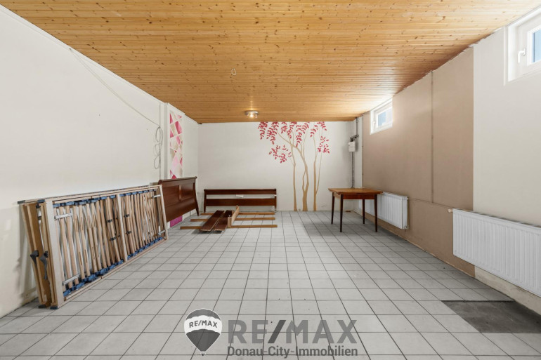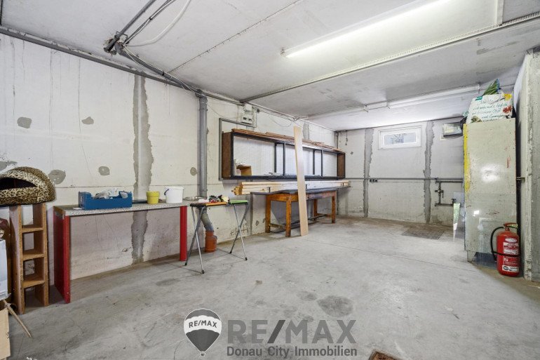 Der 213 m² großer Keller wurde wohnlich ausgebaut und, während der Bauphase, inklusive Nassräumen, Küche und Waschmaschinenanschluss, als Wohnung genutzt und steht nun mit Haustechnik, mehreren Räumen für Hobby, Fitness, Lager etc. zur Verfügung.