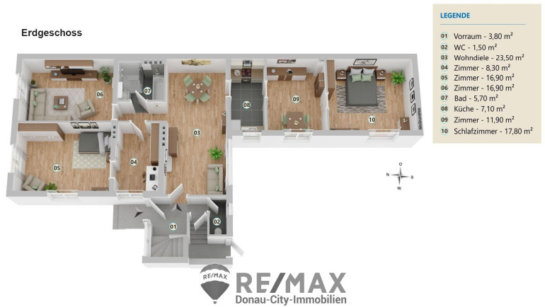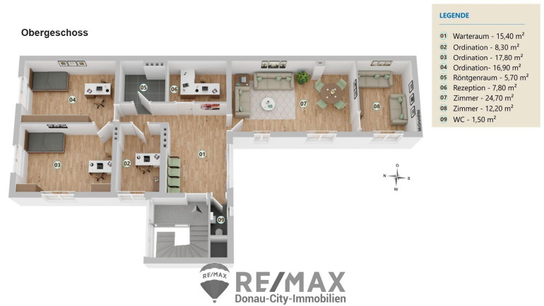 Es gibt zwei getrennte Wohneinheiten, je Etage eine. Das Erdgeschoss wurde zum Wohnen und das Obergeschoss zum Arbeiten, als Ordination genutzt, ließe sich natürlich auch als Büro verwenden. Ideal auch entweder für eine Großfamilie oder zwei Familien.