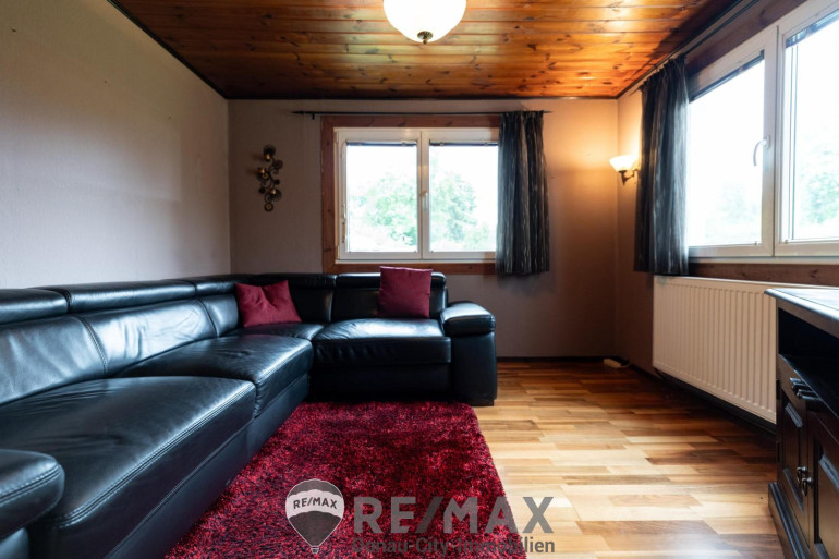 Das Haus bietet rund 102 m² Wohnfläche, verteilt auf 5 helle Zimmer, die vielfältige Nutzungsmöglichkeiten eröffnen. Große Fenster schaffen eine freundliche Atmosphäre und geben den Blick ins Grüne frei.