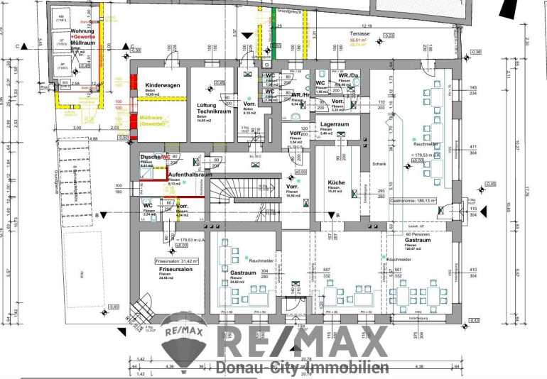 Erdgeschoss (Gastronomiefläche) – 186,13 m²