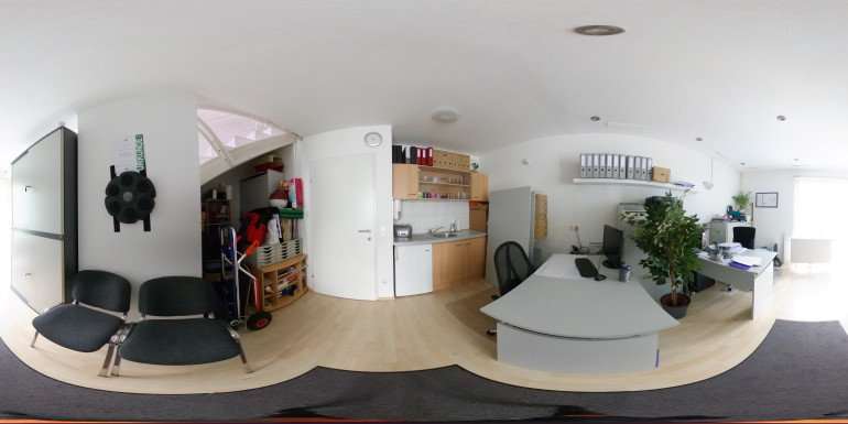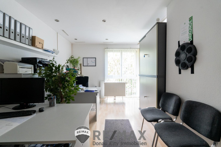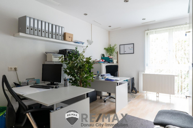 Derzeit wird das Erdgeschoss als Büro genutzt – perfekt für Selbständige oder Homeoffice. Durch die separate Raumaufteilung lässt sich diese Ebene aber auch problemlos als Wohnbereich gestalten.