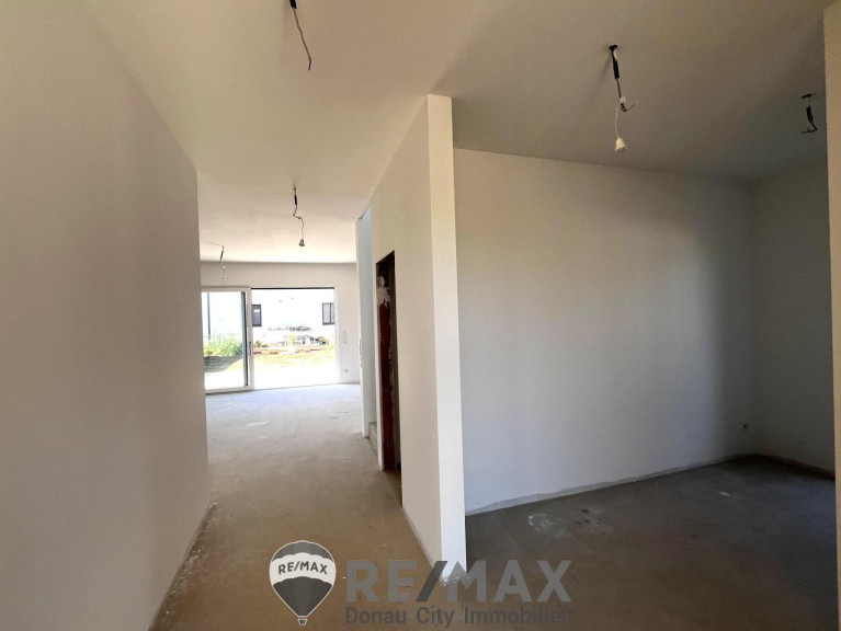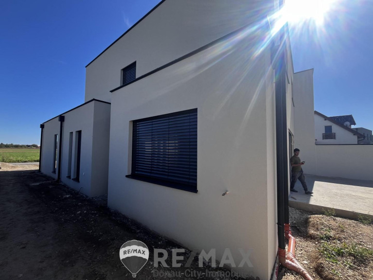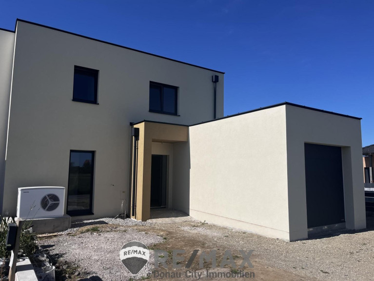 Dieses soeben fertiggestellte Haus wartet mit großzügigen 146m² Wohnfläche auf seine ersten Bewohner! Helle Räume, durchdachte Architektur und Ausstattung auf modernstem Standard lassen keine Wünsche offen. Das Haus wird belagsfertig übergeben. Das Grundstück umfasst ca. 390 m² und liegt am Rande der Ortschaft in einer neuen ruhigen Siedlungslage am Rande der Ortschaft und den Feldern. – ein idealer Ort für Familien und Menschen, die Wohnen mit Wohlfühlcharakter schätzen.