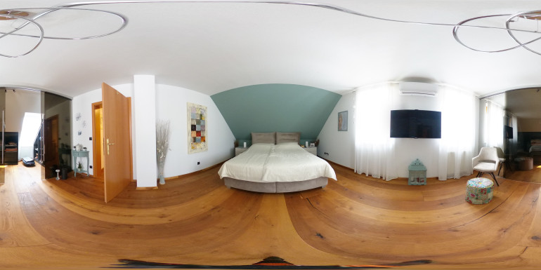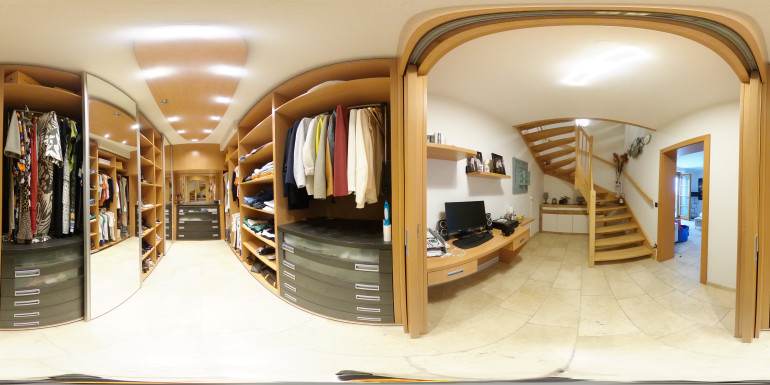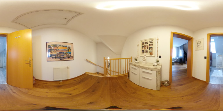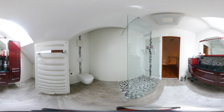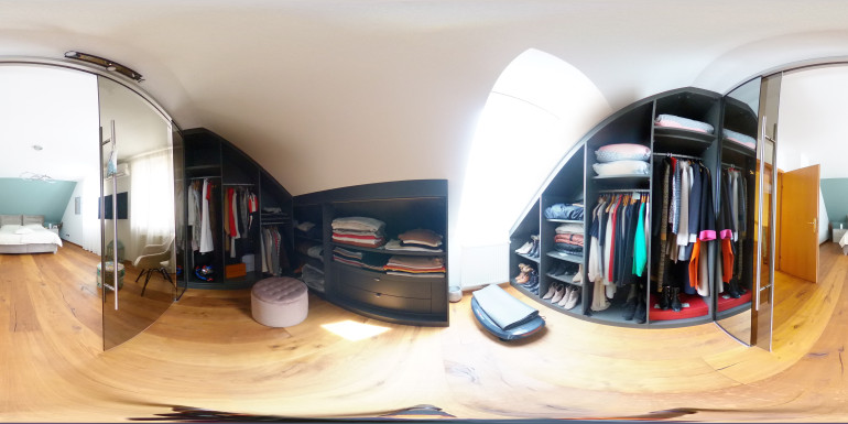 Das Obergeschoss beeindruckt mit einem stilvollen Badezimmer inklusive Walk-in-Dusche, Doppelwaschbecken und einem Handtuchheizkörper. Das große Schlafzimmer mit separatem Schrankraum bietet Ruhe und Komfort. Dank des großzügigen Zuschnitts ist hier auch die mögliche Umgestaltung in zwei getrennte Schlafzimmer denkbar – ideal für Familien mit erhöhtem Platzbedarf.