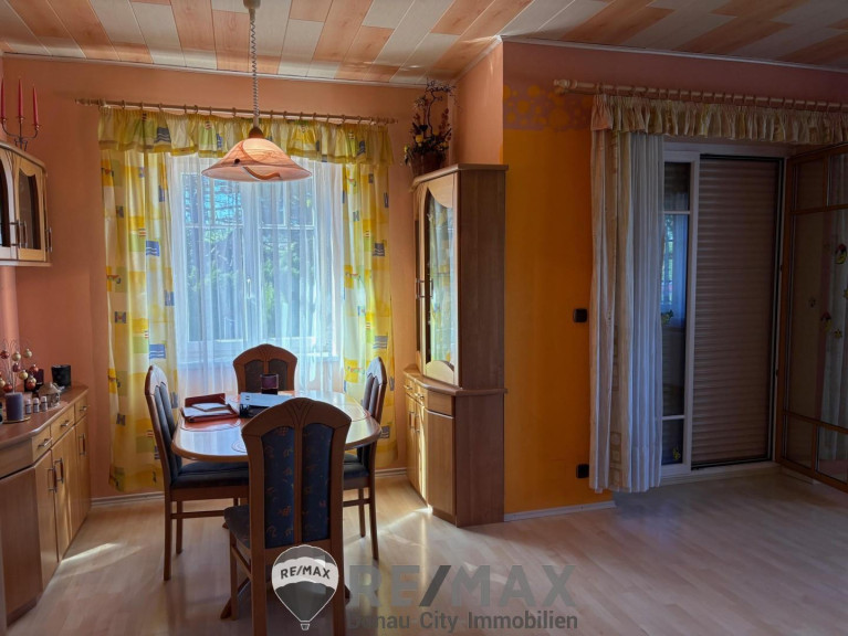 Der Bungalow ist erhöht auf einem Vollkeller errichtet und über einige Stufen erreichbar. Angekommen im Haus befinden Sie sich im Vorzimmer, aus diesem sind alle Räume begehbar. Das Haus besteht aus einem Wohnzimmer mit Essplatz, einer Küche mit Abstellraum, einem Schlafzimmer, einer Garderobe, einem Bad mit Dusche, Badewanne und 2 Waschbecken und WC extra. Es gibt eine Südterrasse, die vom Wohnzimmer aus begehbar ist.