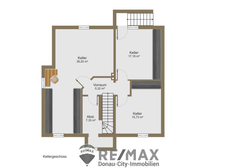 Die Wohnfläche beträgt ca. 80 m², dafür ist der Keller mit Tageslicht sehr großzügig mit ca. 85 m² als Wohnkeller ausgebaut. Aus dem Vorzimmer gelangen Sie mit Innenstiegen in den Keller und die Außenstiegen führen Sie direkt in den Garten. Die Aufteilung im Keller, auf der Fläche von fast 40 m² befindet sich ein komplett eingerichteter Fitnessraum mit Geräten. Die anderen Räume sind: Bad mit Dusche und WC, Büroraum, sowie ein Technik- und Haushaltsraum.