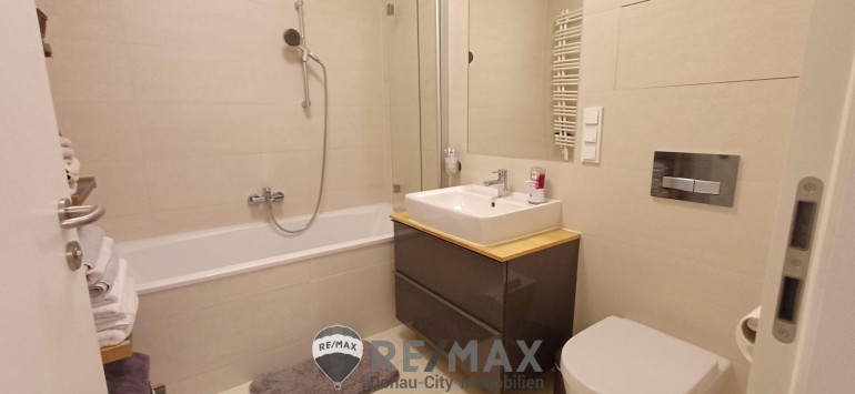 Die Wohnung verfügt über eine Klimaanlage, Fußbodenheizung sowie eine kontrollierte Wohnraumlüftung, die das ganze Jahr über für ein angenehmes Raumklima sorgt. Ein modernes Badezimmer, separates WC und ausreichend Stauraum – inklusive Kellerabteil und zusätzlichem Abstellraum direkt am Gang – runden das Angebot ab.