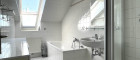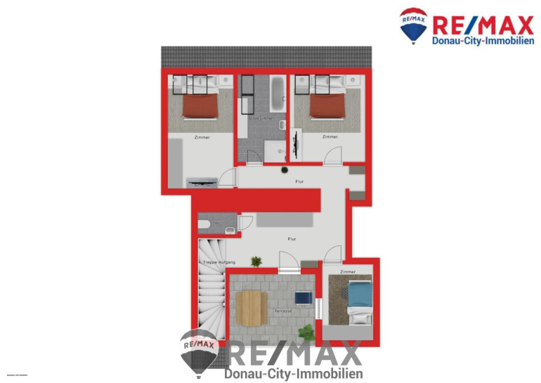 Mit 3 Zimmern, einem hellen Fenster-Bad, separatem WC und der Terrasse bietet das Obergeschoss gemütlichen Komfort mit dem charmanten Ambiente eines Dachgeschosses.