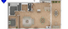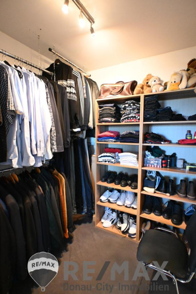 Die ursprüngliche Raumaufteilung wurde zugunsten eines großen offenen Wohn- und Küchenbereichs abgeändert, kann jedoch durch das Einziehen einer Zwischenwand mit geringem Aufwand wiederhergestellt werden, um wieder 2 Schlafräume zu erhalten. Weiters gibt es ein großes Badezimmer, ein separates WC sowie einen Abstellraum und einen begehbaren Kleiderschrank.