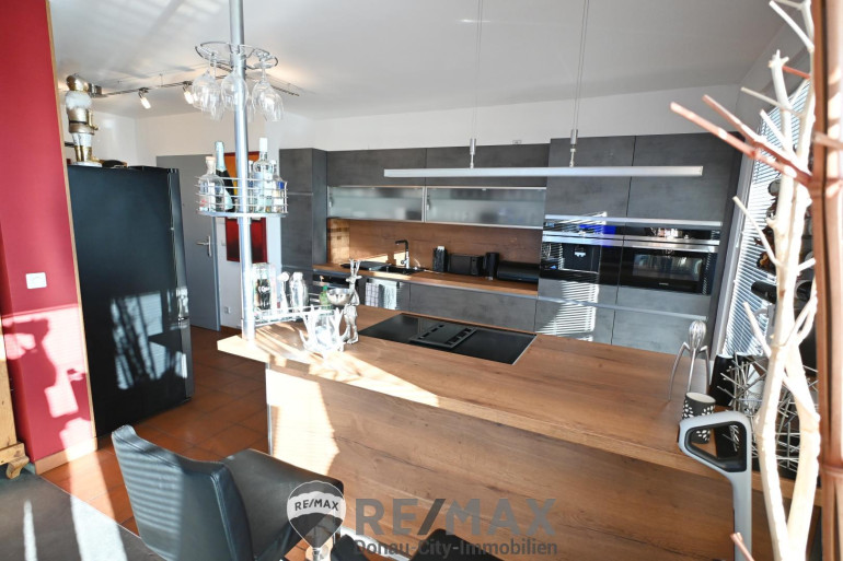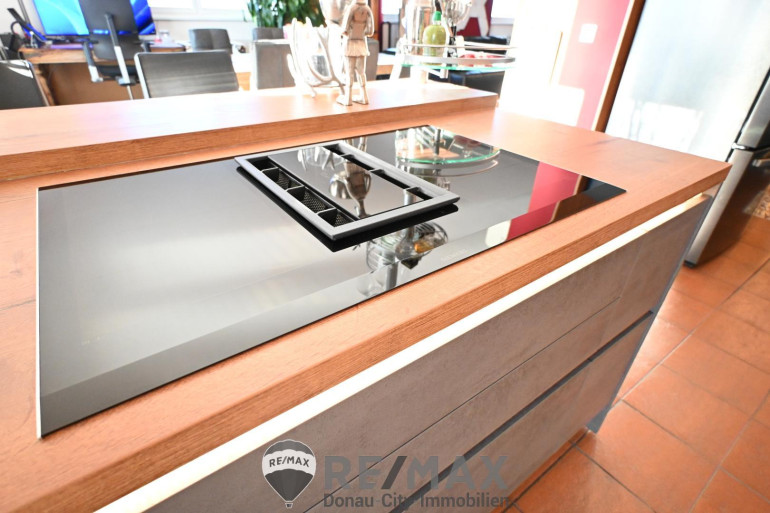 - Küche mit hochwertigen Siemens-Geräten (Backofen-Dampfgarer-Mikrowellen-Kombi, integrierte Kaffeemaschine, Geschirrspüler, Induktionskochfeld)