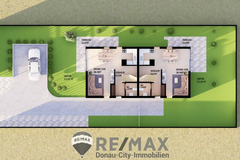 Obwohl bereits ein Kaufanbot vorliegt für eine der beiden Doppelhaushälften, haben Sie dennoch die Wahl, ob Sie sich für das vordere oder hintere Doppelhaus entscheiden wollen. Prinzipiell wird das Haus belagsfertig angeboten, jedoch mit der Option das Haus schlüsselfertig zu übergeben und Sie können die gesamte Innenausstattung individuell aussuchen und mit dem Bauträger direkt besprechen, welche Materialien für Böden, Küche, Bäder samt Armaturen und vielem mehr Ihnen am besten gefallen, damit das Haus von Anfang an genau Ihren Wünschen entspricht und auch so von Ihnen übernommen werden kann. Ein eigener Parkplatz am Grundstück gehört dazu und ist bereits im Preis inbegriffen.