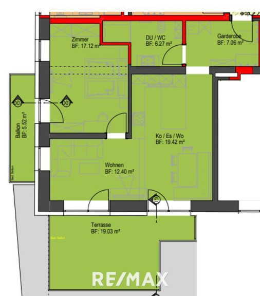 • Zwei Balkone: ca. 5,52 m² und ca. 19,03 m²