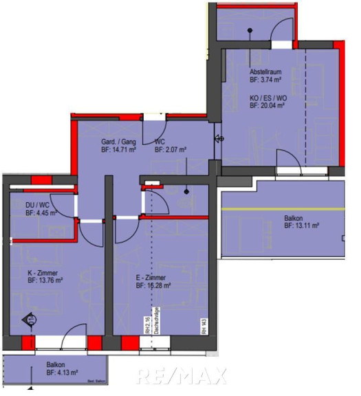 • Zwei Balkone (ca. 13,11 m² & 4,13 m²)