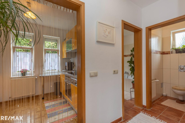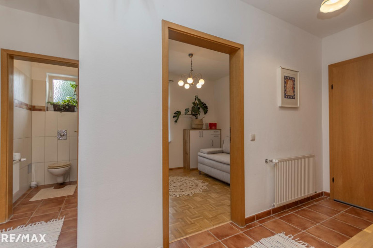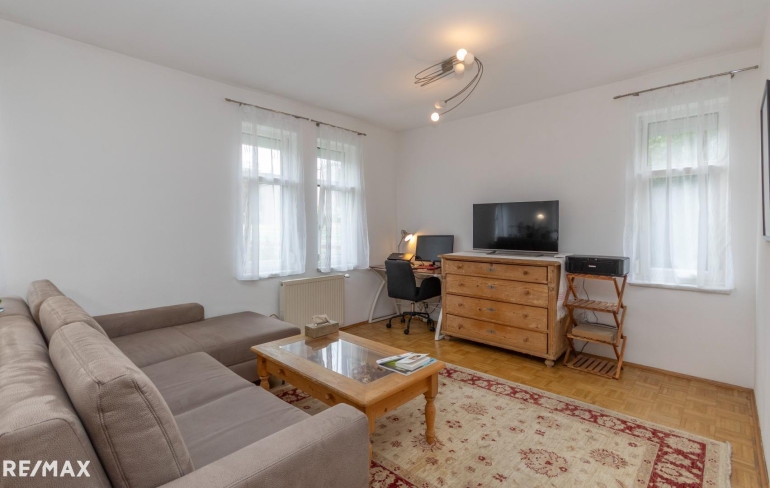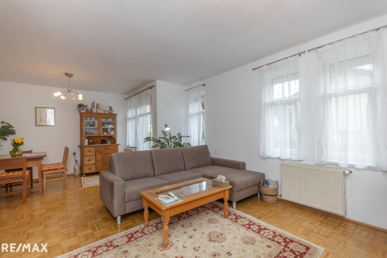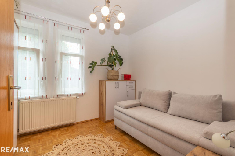 Die 55,40 m² Wohnfläche werden durch die Unterteilung der Wohnräume optimal genutzt. Über den Vorraum der Wohnung sind alle Räume der Wohnung zentral zugänglich. Das geräumige und helle Wohnzimmer umfasst zusammen mit dem Essbereich 26,79 m². Vom Wohnzimmer aus gelangt man über eine 2,8 m² große Terrasse direkt in den Garten hinter dem Gebäude, wo Sie Ruhe und frische Luft genießen können. Der Garten ist Allgemeinfläche, es gibt aber eine Benützungsvereinbarung mit den Nachbarn.