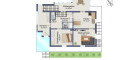 Erdgeschoss: Vorraum, Diele, Bad + WC, Küche mit Essbereich, Wohnzimmer, Schlafzimmer, Wintergarten, überdachter Balkon.