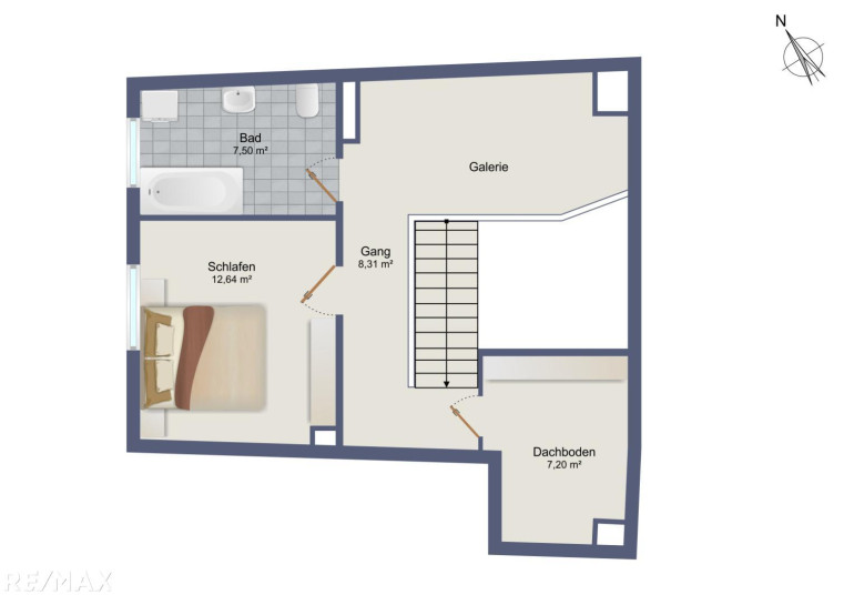 Die moderne Küche lädt zum gemeinsamen Kochen und Genießen ein und bietet ausreichenden Stauraum. Zwei Schlafzimmer bieten Rückzugsmöglichkeiten und Ruhe für eine erholsame Nacht. Die offene Galerie ist vielseitig nutzbar.