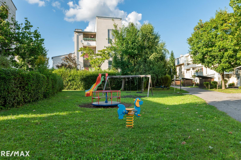 Die Wohnanlage präsentiert sich in einem gepflegten Zustand, umgeben von großzügigen Grünflächen. Ruhige Wohnqualität und zahlreiche Spielmöglichkeiten machen sie besonders familienfreundlich.