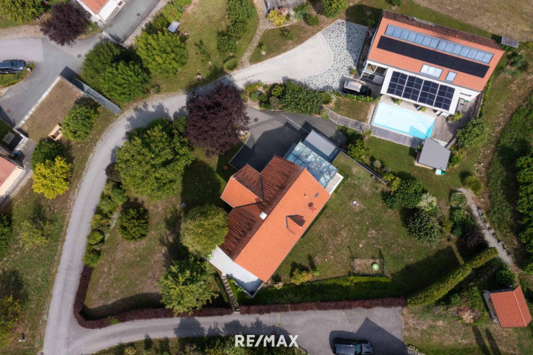 Erbaut im Jahr 2002 und im Jahr 2012 durch einen 23 m² großen Wintergarten, sowie eine zweite Garage & einem Carport erweitert.