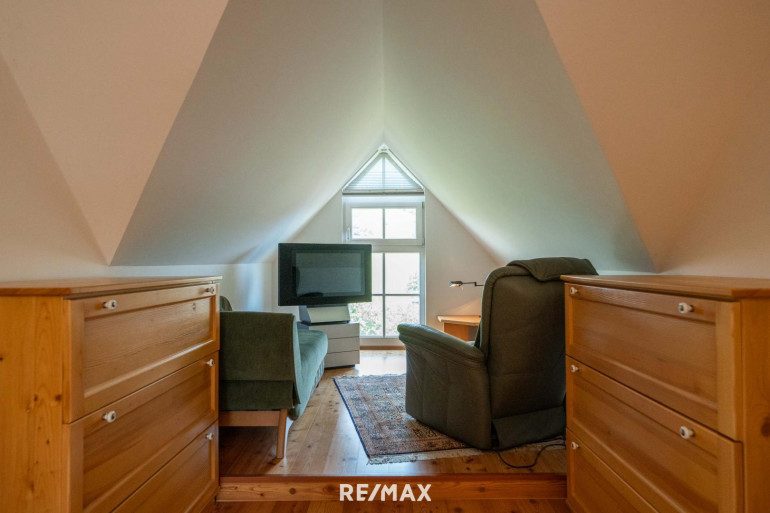 Im Obergeschoss warten drei mögliche Schlafzimmer, ein Badezimmer mit WC und ein Vorraum, der liebevoll als kleines „Fernsehplatzerl“ genutzt wurde – charmant, gemütlich, vielseitig.