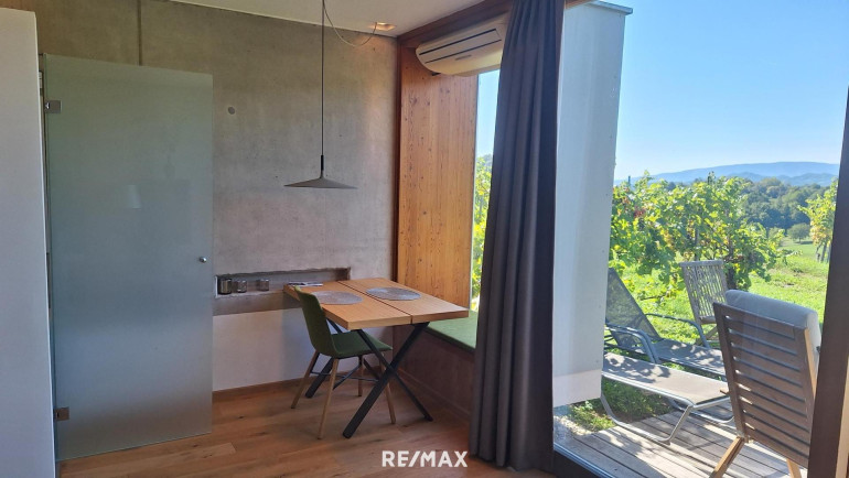 Das Apartment wurde modern und geschmackvoll eingerichtet – hochwertig ausgestattet, lichtdurchflutet und mit direktem Zugang zu Ihrem eigenen Gartenbereich. Die Terrasse bietet Platz zum Entspannen und Genießen – bei Sonne, Vogelgezwitscher und einem Glas südsteirischem Wein.