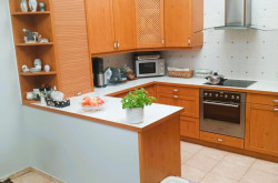 Gas, Fußbodenheizung, Heizofen, Einbauküche, Dusche