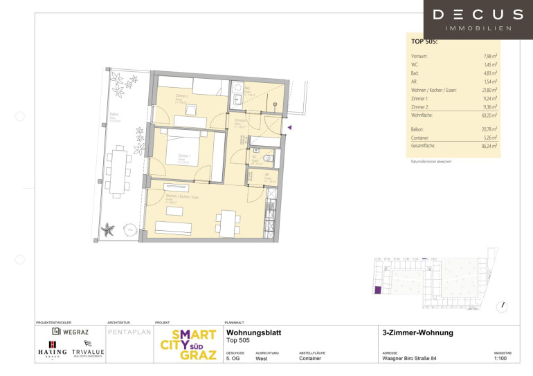 Für weitere Informationen und Besichtigungen steht Ihnen gerne Frau Michaela Samt unter der Mobilnummer +43 660 31 35 274und per E-Mail unter samt@decus.at persönlich zur Verfügung.