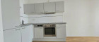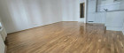 Die Wohnung verfügt über ein geräumiges, helles Wohnzimmer mit Küche und Essbereich.