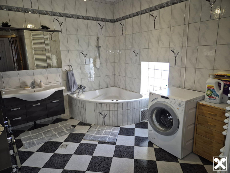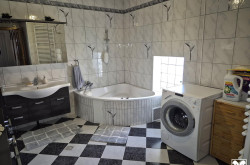- Badezimmer mit Badewanne und Waschmaschinenanschluss