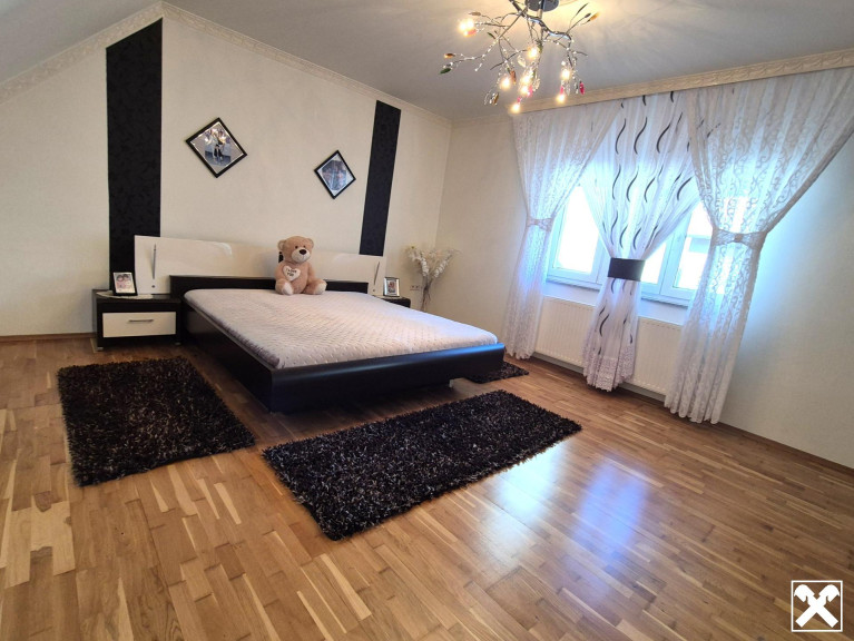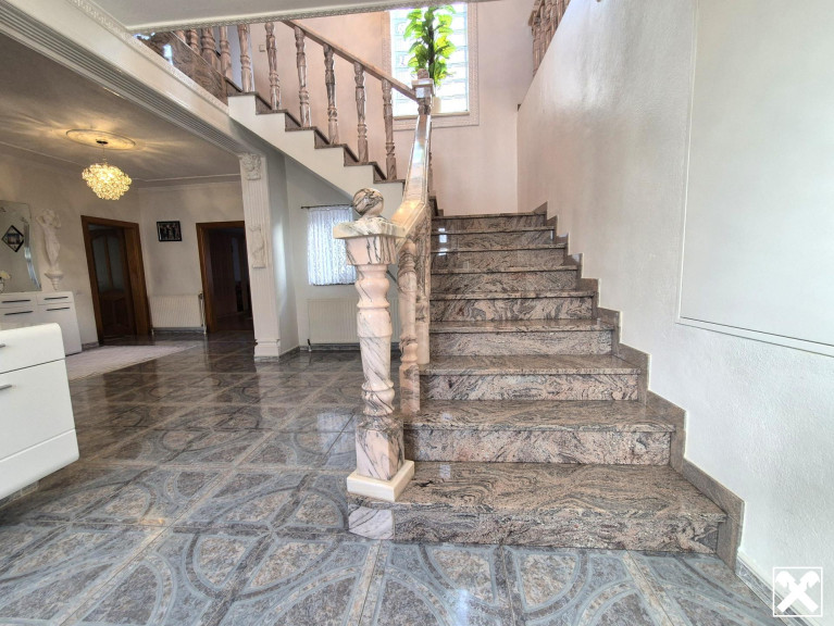 Die Gesamtnutzfläche beträgt ca. 428 m². Aufgeteilt auf Erdgeschoss, Obergeschoss und Nebenflächen, versehen mit hochwertigen Holzparkettböden, edler italienischer Granit, eine Einbauküche mit exklusiver Steinplatte, sowie zahlreiche weitere Details sorgen für ein angenehmes Wohngefühl.