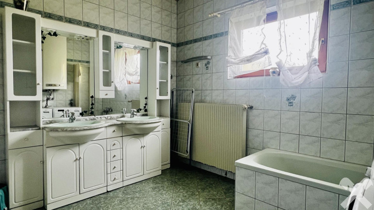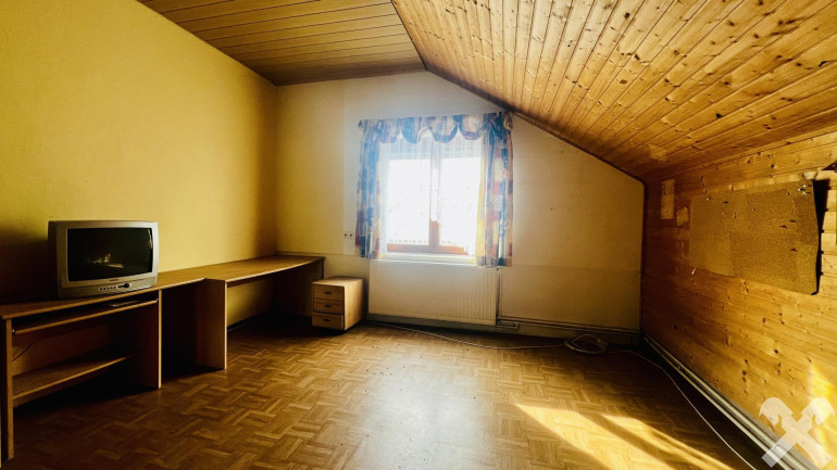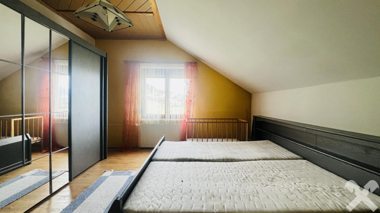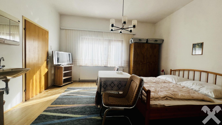 Das Erdgeschoss umfasst ca. 95 m² Wohnfläche und bietet ein Badezimmer, zwei separate WC, eine Küche, ein Wohnzimmer sowie zwei zusätzliche Zimmer. Im Obergeschoss stehen vier weitere, separat begehbare Wohn- bzw. Schlafzimmer mit rund 85 m² zur Verfügung.