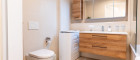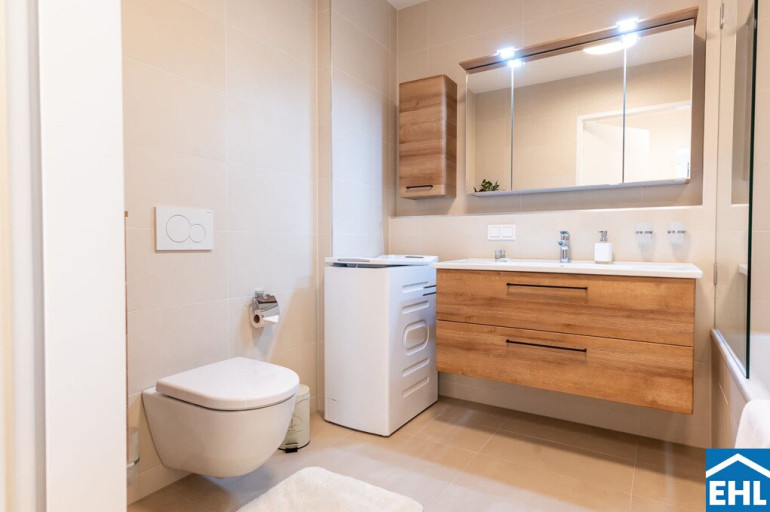 - Badezimmer mit Dusche, Toilette und Waschmaschinenanschluss