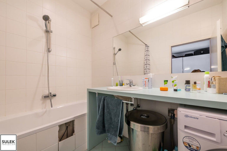 - verfliestes Bad mit Badewanne und Waschmaschinenanschluss