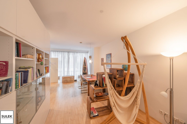 Dann ist diese entzückende 2-Zimmer Wohnung mit ca. 63m² Wohnfläche und insgesamt 9m² Terrassenfläche das Richtige für Sie als Single oder Paar, wenn Sie in einer dynamischen und vielfältigen Umgebung leben wollen und auf der Suche nach einem Ort des Wohlfühlens sind. Die im Erdgeschoss gelegene und gänzlich hofseitig ausgerichtete Wohnung verfügt über ein Vorzimmer mit Zugang zum separaten WC und zum großzügigen Wohnraum mit vollausgestatteter Küche und danebenliegendem, praktischen Abstellraum, ein Schlafzimmer mit anschließendem Badezimmer mit Badewanne und zwei Innenhof-Terrassen - jeweils eine vom Wohn- und eine vom Schlafzimmer aus begehbar.