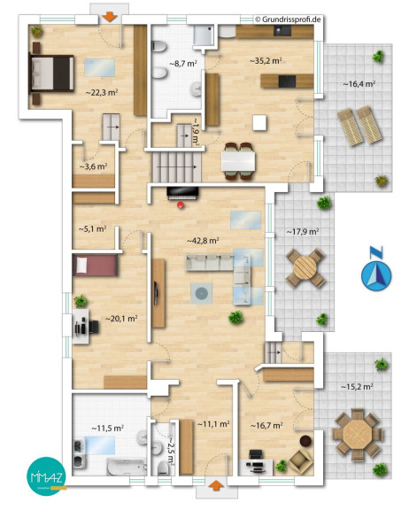 - 3 Terrassen ca. 40 m²