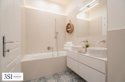 - Badezimmer mit Badewanne, zwei Handwaschbecken und WC: ca. 6 m²