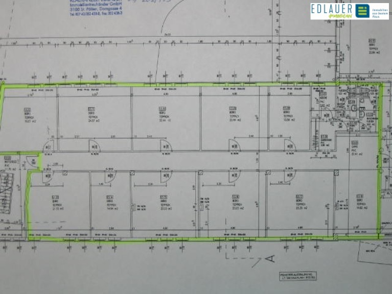 Das im 1. Obergeschoß (mit Lift) gelegene Büro hat ein unverbindliches Ausmaß von ca. 277 m², bestehend aus: