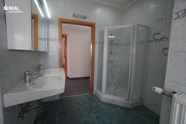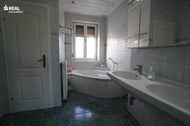 - Badezimmer mit Badewanne, Dusche und Waschtisch